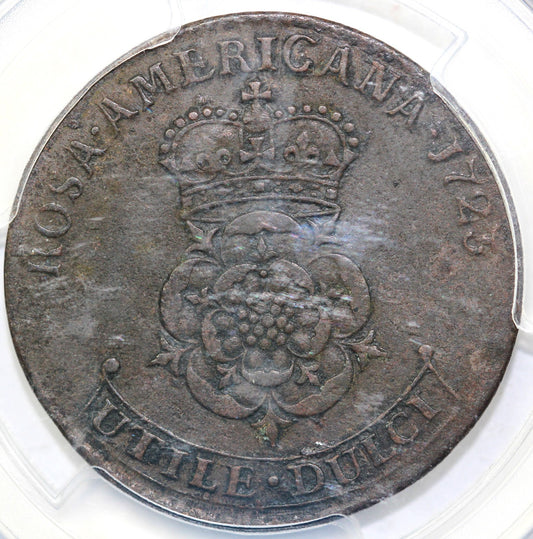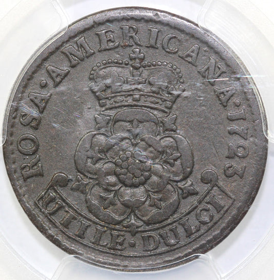 1723 2p Rosa Americana 2 Pence Colonial Coin PCGS VF Details Tooled