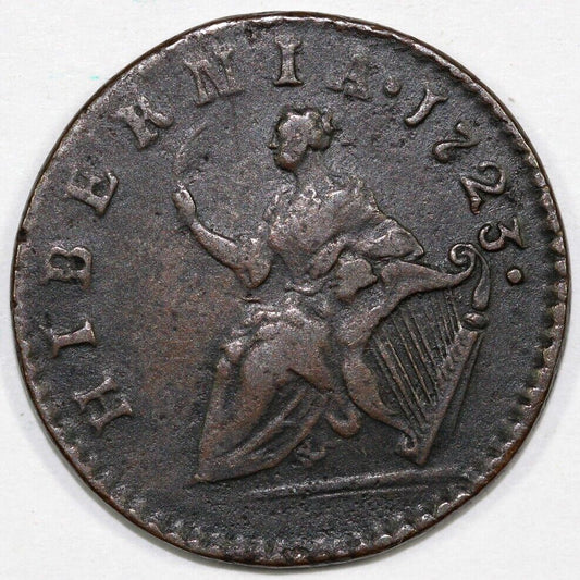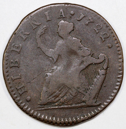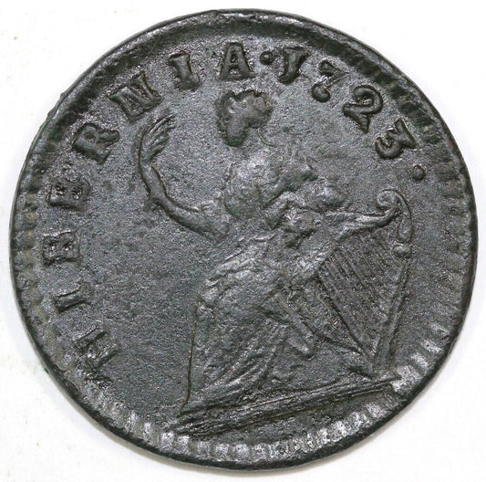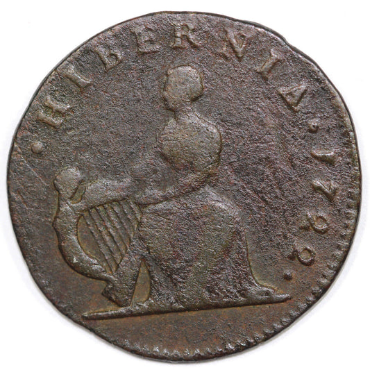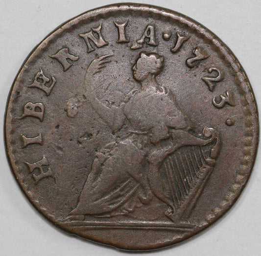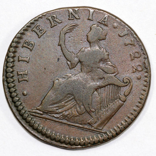 1722 1/2p Woods Hibernia Colonial Copper Coin