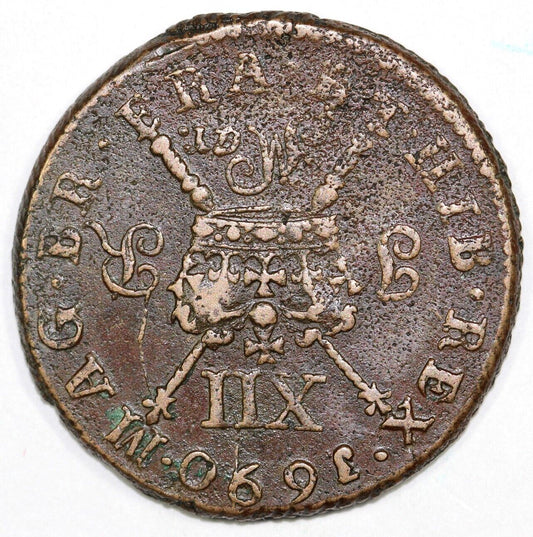 1689 Shilling S-6581D Ireland Gun Money ANACS F 12