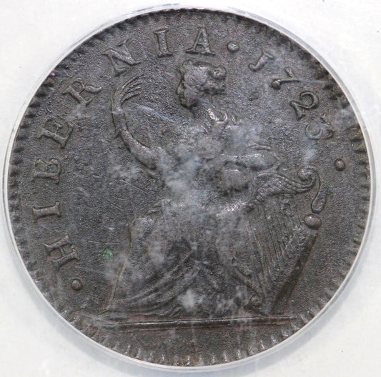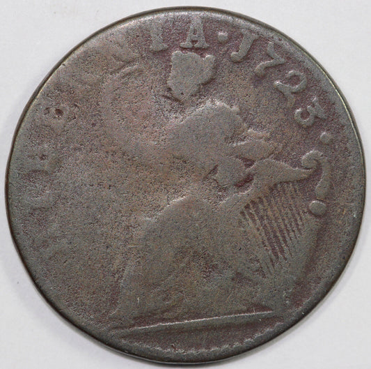 1723 1/2c Woods Hibernia Colonial Copper Half Penny