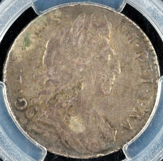 1697 1/2Cr Large Shields Ordinary Harp Great Britain Half Crown PCGS XF Details