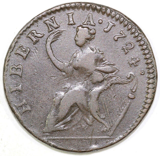 1722 1/2p Woods Hibernia Colonial Copper Coin