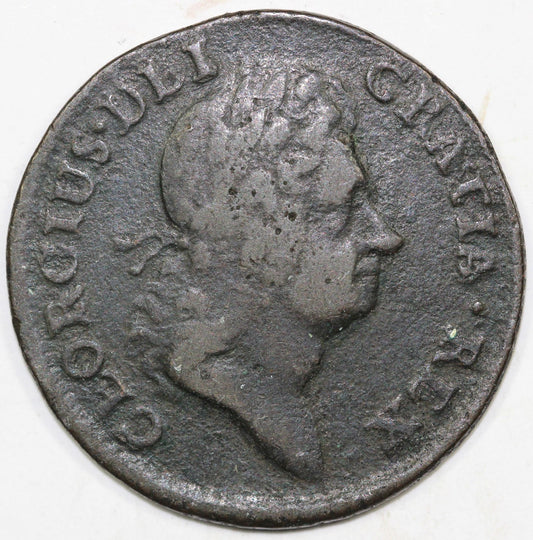1723 Woods Hibernia Farthing Colonial Copper