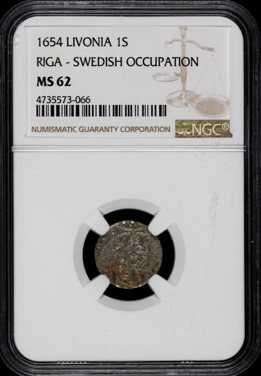 1654 1s Silver Livonia Swedish Occupation Riga NGC MS 62