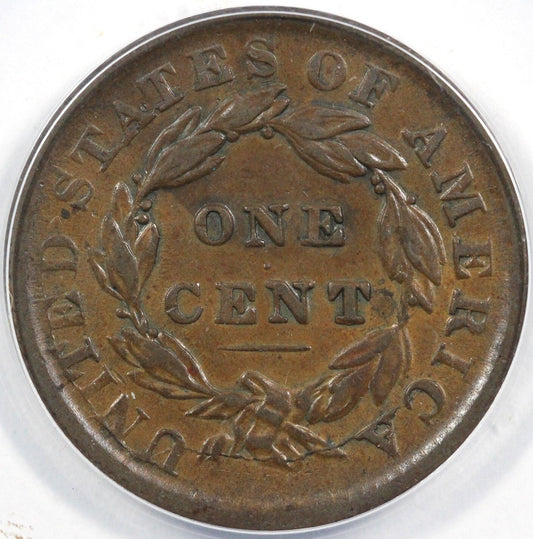 1842 1c Braided Hair Large Cent ANACS AU 58 Details Scratched-Cleaned