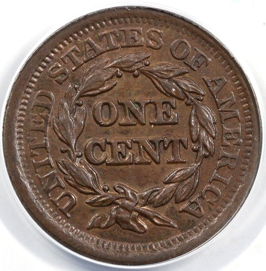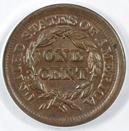 1851 1c N-6 Braided Hair Large Cent ANACS AU 55