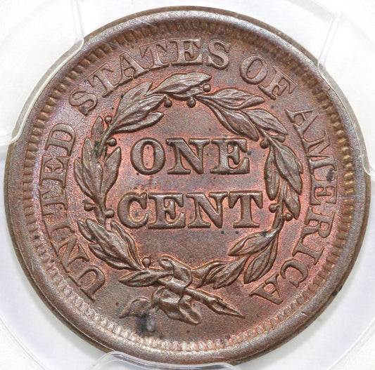 1853 1c Braided Hair Large Cent PCGS MS 63