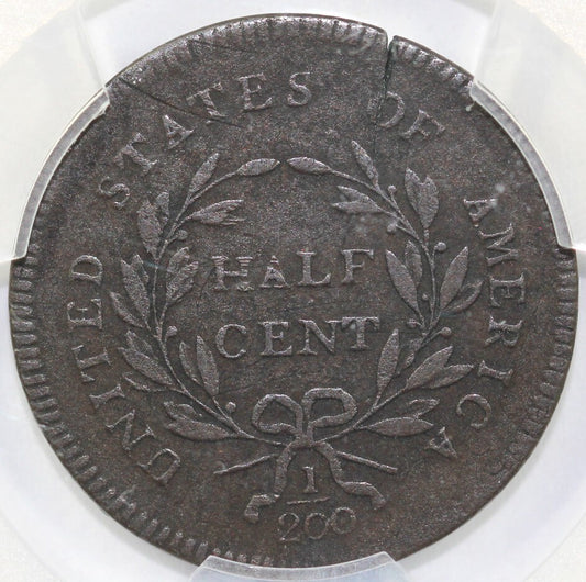 1795 1/2c C-6a No Pole Liberty Cap Half Cent PCGS VG Detail Env. Damage