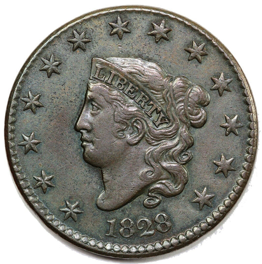1828 1c Coronet or Matron Head Large Cent *Small Wide Date*