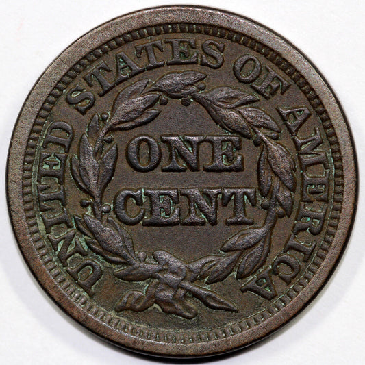 1847 1c N-12 Braided Hair Large Cent *Rim Break*