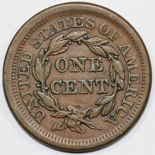 1853 1c Braided Hair Large Cent *Out of Register*