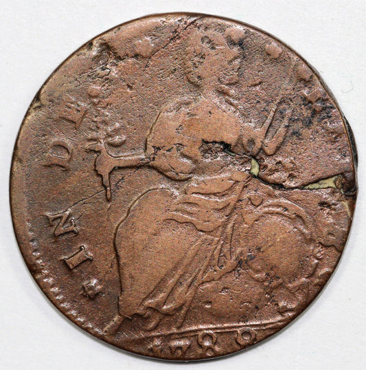 1788 1/2p M.16.3-N Connecticut Colonial Copper Half Penny