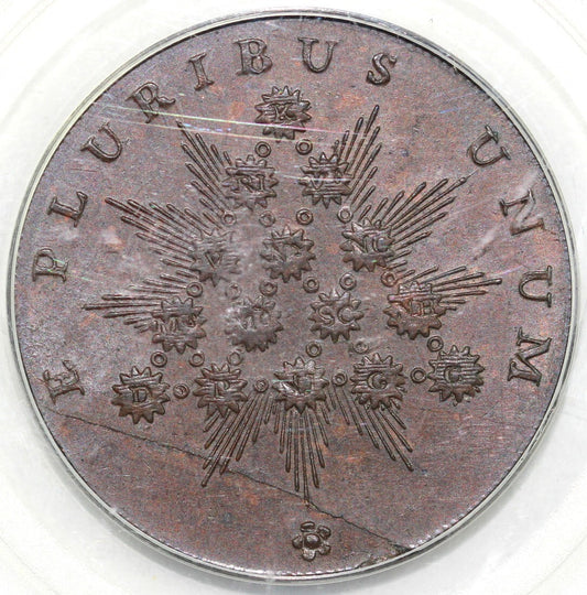 1787 1c M. 60-p PLURBIS New Jersey Colonial PCGS AU Detail Env Damage EX: Martin