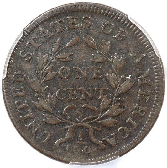 1797 1c S-136 Rev of 1797, Stems Draped Bust Large Cent PCGS AU Detail Cleaned