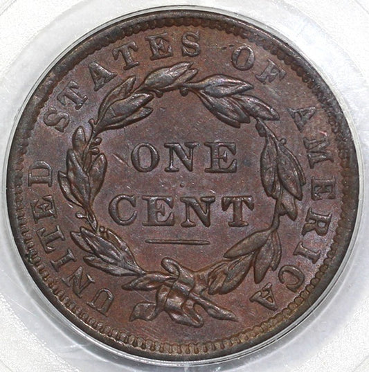 1838 1c N-8 Coronet or Matron Head Large Cent PCGS AU 58