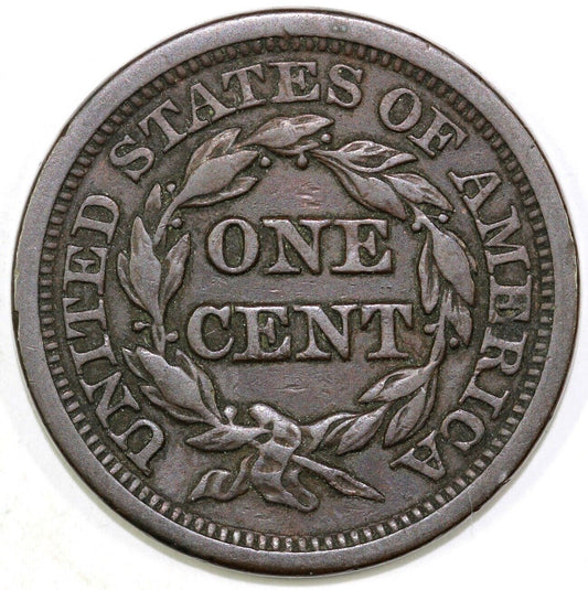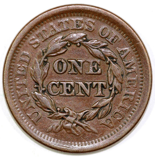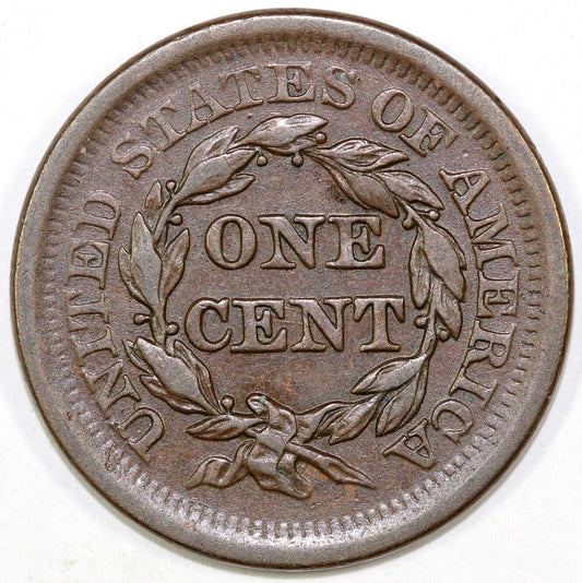 1850 1c N-2 Braided Hair Large Cent NGC AU 58