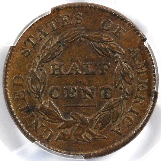 1828 1/2c 13 Stars Classic Head Half Cent PCGS AU 58