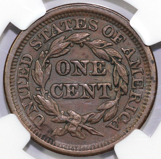 1847 1c N-30 Braided Hair Large Cent NGC AU 55