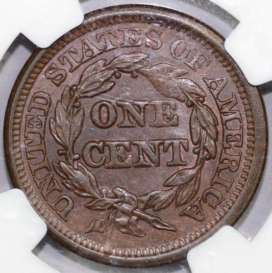 1854 1c N-6 Braided Hair Large Cent NGC MS 64+