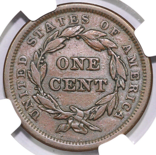 1849 1c N-9 Braided Hair Large Cent NGC AU Details Improperly Cleaned