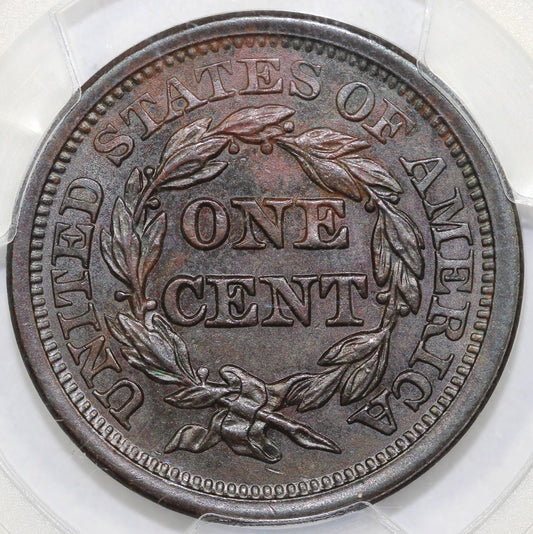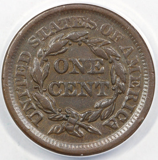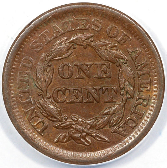 1857 1c N-1 Large Date Braided Hair Large Cent ANACS AU 55