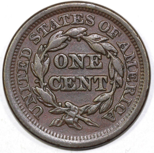 1856 1c Slante 5 N-1 Braided Hair Large Cent ANACS EF 40