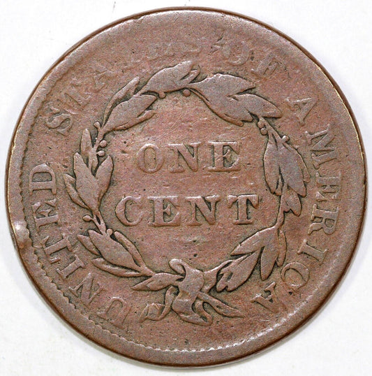 1830 1c N-7 Large Letters Coronet or Matron Head Large Cent