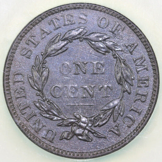 1837 1c N-2 Medium Letters Matron Head Large Cent NGC AU Details EX: Reiver