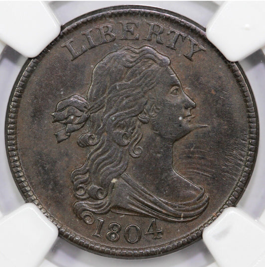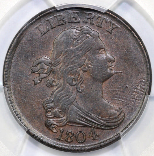 1804 1/2c C-6 Spiked Chin Draped Bust Half Cent PCGS and CAC AU 55