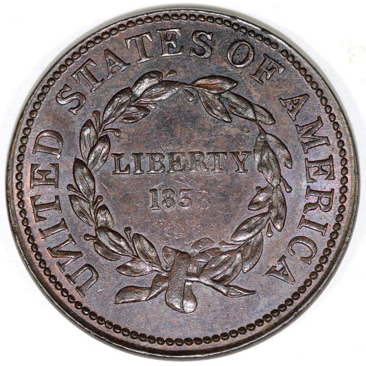 1853 1c Braided Hair Large Cent PCGS MS 65 BN