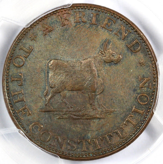 1838 HT-24 Agriculture & Commerce Hard Times Token PCGS AU 55