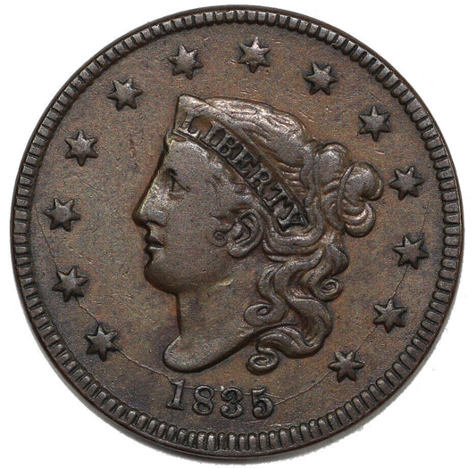 1835 1c N-3 Coronet or Matron Head Large Cent