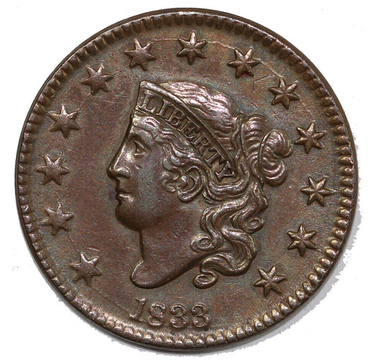 1833 1c N-5 Coronet or Matron Head Large Cent