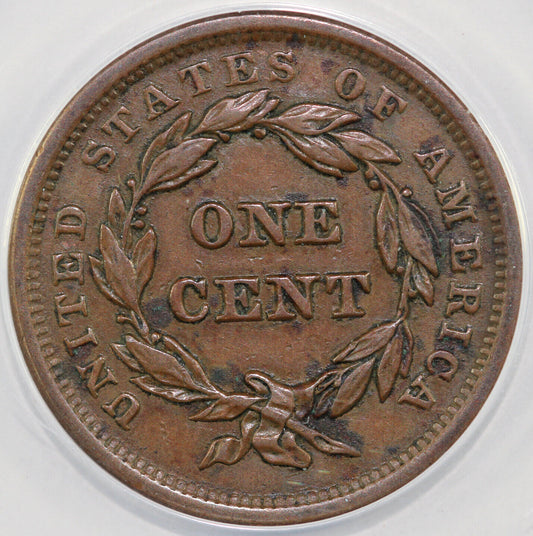 1842 1c Large Date Braided Hair Large Cent ANACS AU 50 DETAILS CORRODED