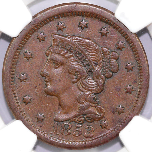 1853 1c N-32 Braided Hair Large Cent NGC XF 45