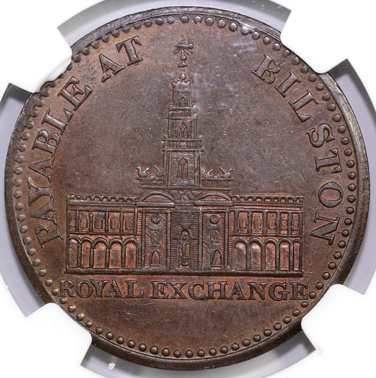 1811 1c Great Britain W-133 Bilston-Royal Exchange Penny NGC MS 61 *Clashed Dies