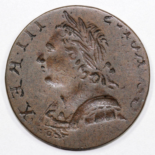 1787 1/2p Horned Bust 4-L Massachusetts Colonial Half Penny PCGS VF 25