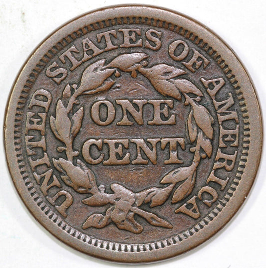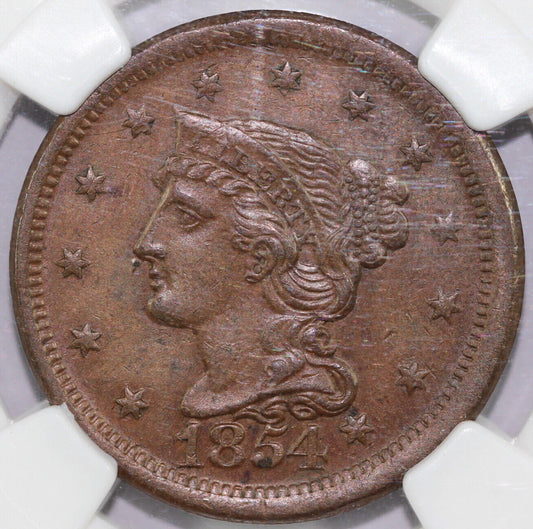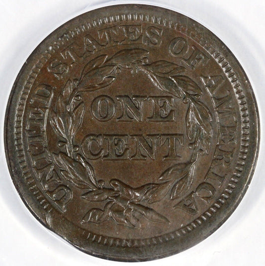 1853 1c Braided Hair Large Cent Rim Clip ANACS AU 55