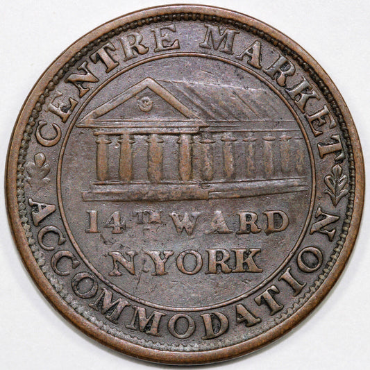 1837 1c New York Hard Times Token *Centre Market Accommodation*