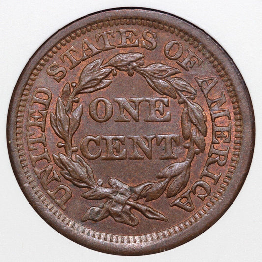 1857 1c N-4 Braided Hair Large Cent ANACS MS 63 BN *Sharp Strike, EDS*