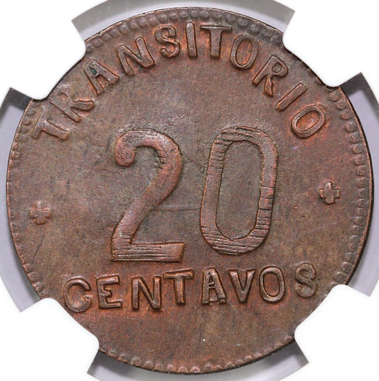 1915 20c Mexico Pueblo/Chiconcuautla Narros "SNDP" 20 Centavos NGC MS 64 BN