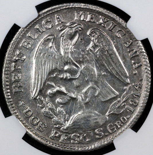 1914-Gro Mexico Guerrero Silver 2 Peso NGC UNC Details Hairlines