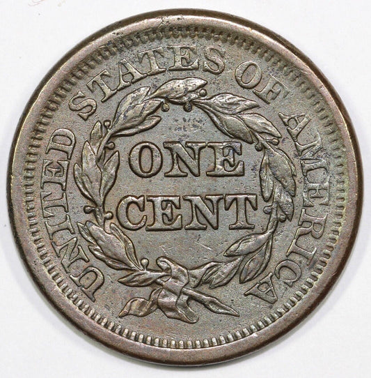 1851 1c N-12 Braided Hair Large Cent ANACS AU 58