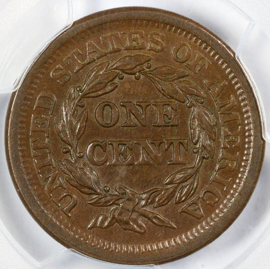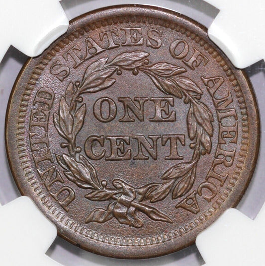 1854 1c N-25 R-3 Braided Hair Large Cent NGC AU 58