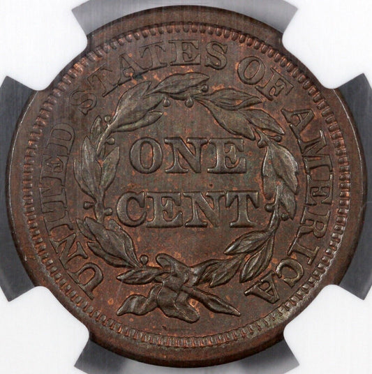 1854 1c N-6 Braided Hair Large Cent NGC MS 64+