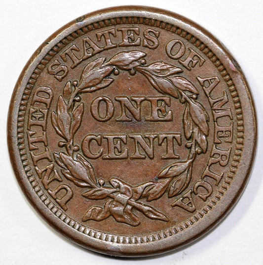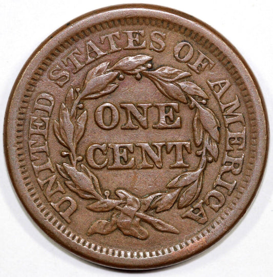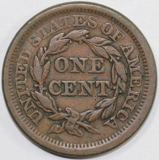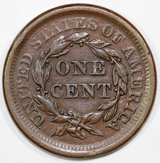 1855 1c Upright 55 N-4 Braided Hair Large Cent