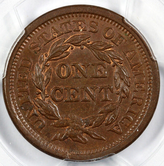 1856 1c N-3 Slanted 55 Braided Hair Large Cent PCGS MS 64 BN