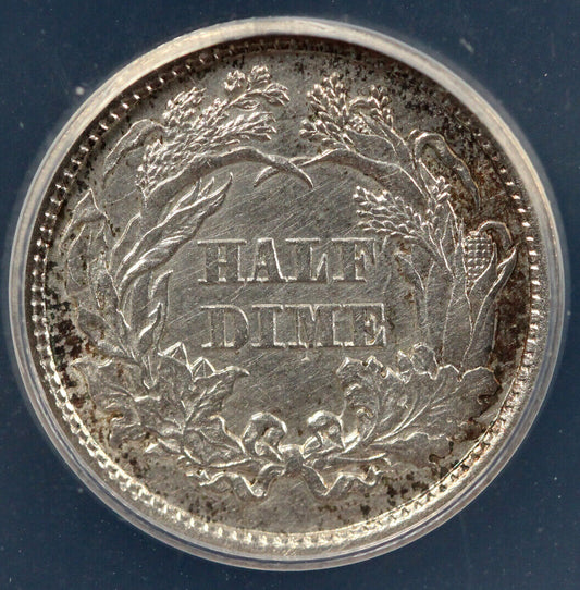 1860 H10c Seated Liberty Half Dime ANACS AU 55 DETAILS CLEANED