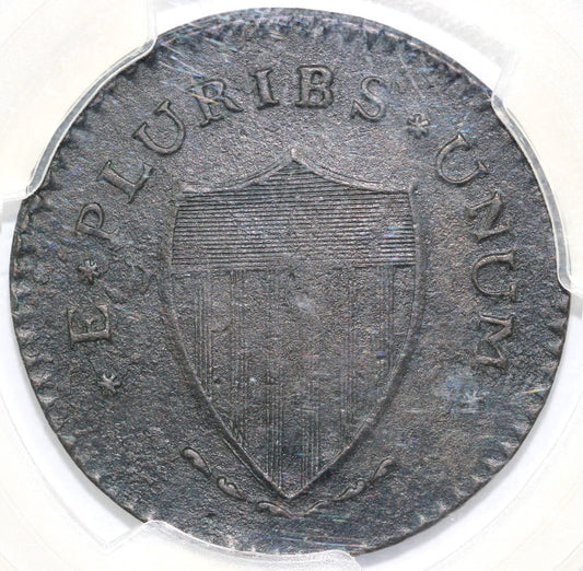 1787 1c M. 60-p PLURBIS New Jersey Colonial PCGS AU Detail Env Damage EX: Martin
