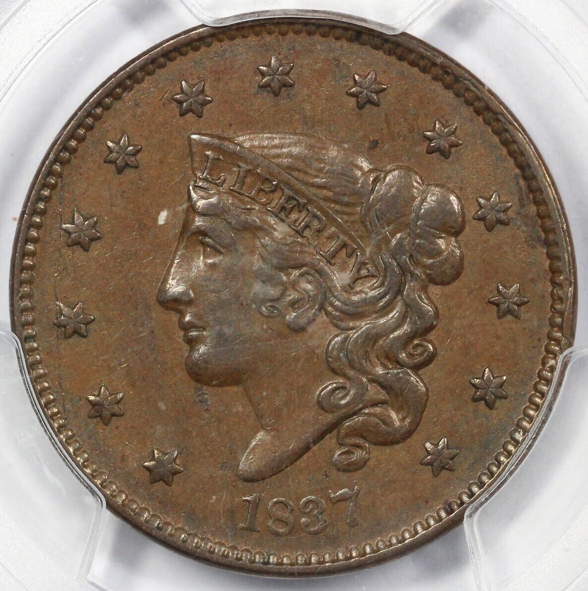 1837 1c Medium Letters Matron Head Large Cent PCGS AU 53